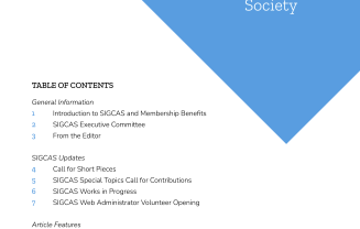 Issues 3-4 of Volume 48 of SIGCAS Computers and Society is now available from the Newsletter page (click above or on the image to the left). It is the first issue for the new editor, Richard Blumenthal, who is taking over from the previous Editor-in-Chief, Randy Connolly.